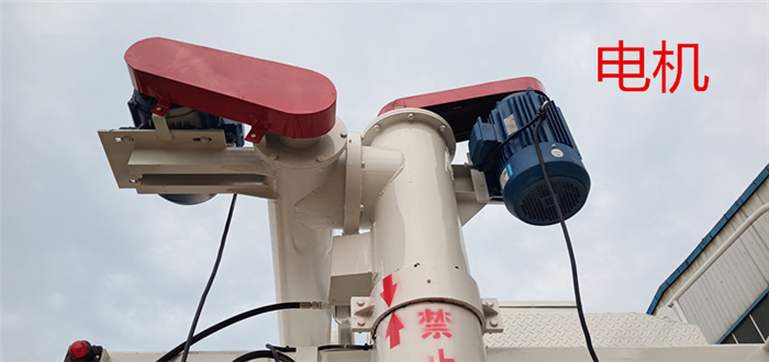 上裝罐體:罐體材質(zhì)采用4mm優(yōu)質(zhì)碳鋼板,整車(chē)3條絞龍,由3個(gè)5.5KW電機(jī)380V外接電源帶動(dòng)頂部絞龍用液壓控制舉升,可左右旋轉(zhuǎn)180°。罐體內(nèi)分為貳個(gè)倉(cāng),可以獨(dú)立控制各分倉(cāng)卸料順序和速度。