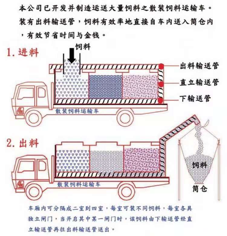 上裝罐體:罐體材質(zhì)采用4mm優(yōu)質(zhì)碳鋼板,整車3條絞龍,由3個5.5KW電機(jī)380V外接電源帶動頂部絞龍用液壓控制舉升,可左右旋轉(zhuǎn)180°。罐體內(nèi)分為四個倉,可以獨立控制各分倉卸料順序和速度。(備注:此報價為標(biāo)配,國產(chǎn)電機(jī),德力西電柜